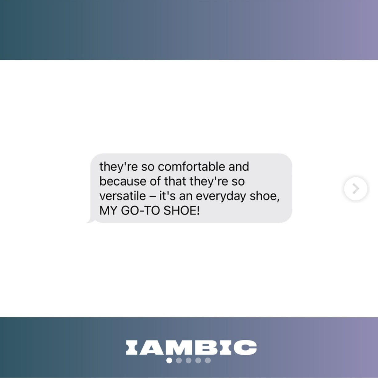 So I suffer from chronic foot pain and I believe that a lot of that has to do with wearing shoesthat actually don't fit. Whenever I wear my IAMBICs, I've noticed that I have felt less pain,which is really incredible. And they're just so comfortable. I'm not worried about the back of my heel popping out or my ankles not having enough support. Also, they're just so stylish andevery timeI wear them out in the street, I always get compliments, which never happens to me.