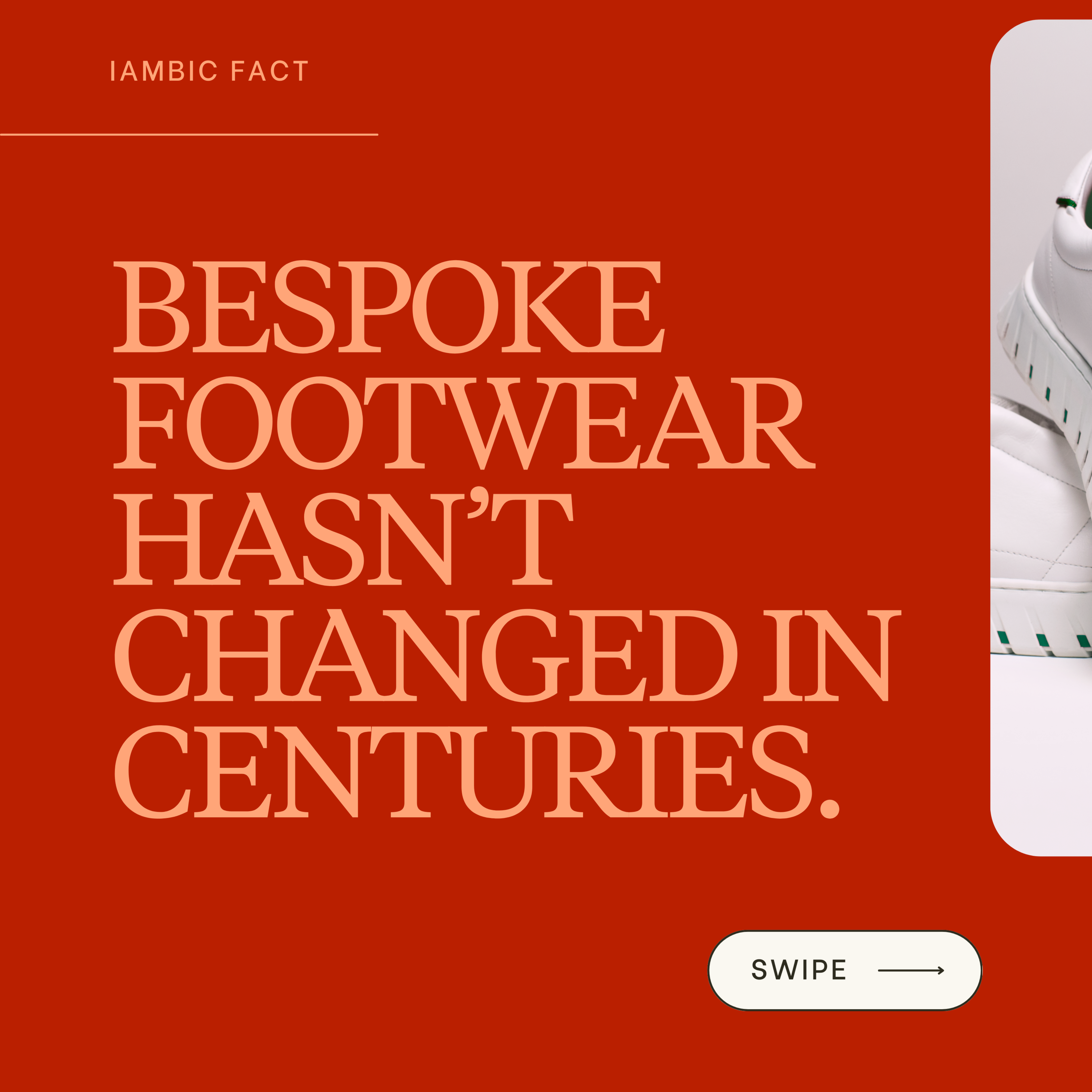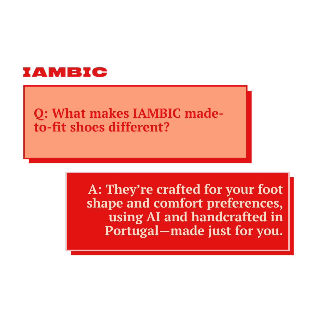 IAMBIC creates AI-tailored footwear designed for the way people move. Each pair begins with a simple smartphone scan and comfort profile. Our proprietary Fit Engine analyzes more than 20 biometric data points to shape a digital last unique to every individual.